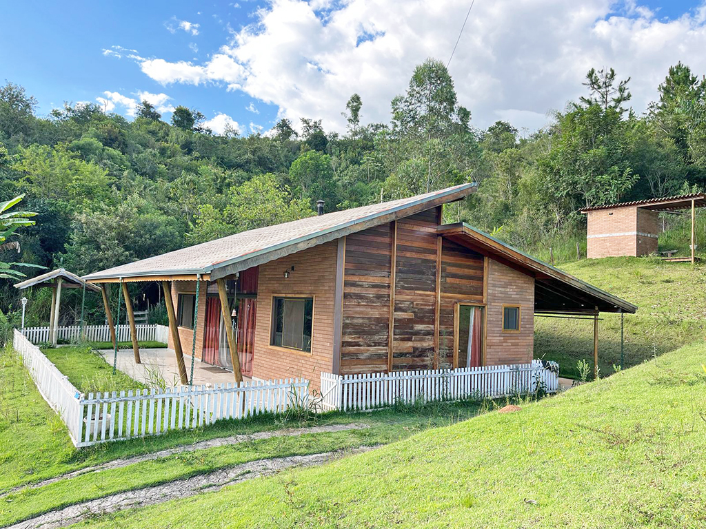 Lindo e aconchegante LOFT de 100,00 m² de área construída, acabamento em tijolos ecológicos e madeira de primeira, pé-direito alto, com iluminação natural, lareira, 02 banheiros com box e água aquecida nas torneiras, sala com porta balcão e frente para a varanda toda de vidro preservando a vista panorâmica para as montanhas, água de poço, área toda cercada e gramada, ótima localização, a 04 km do centro da cidade de Itapeva - MG.