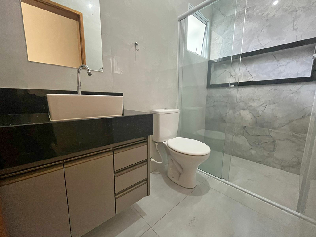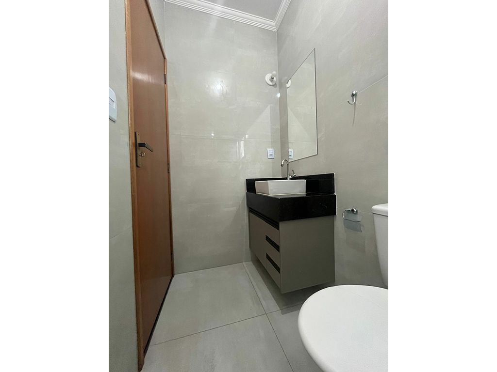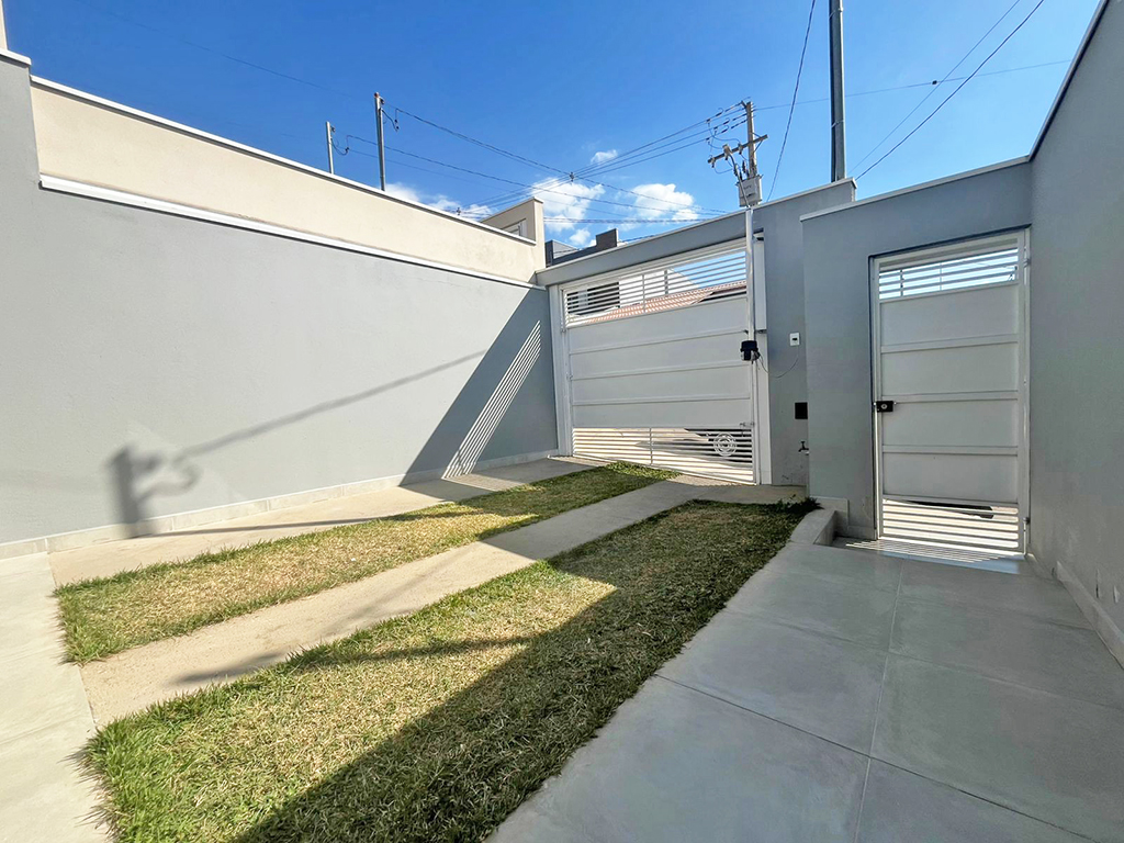 Casa nova com 02 dormitórios, sendo uma suíte, acabamento de primeira, móveis planejados na cozinha, gabinete e box nos banheiros, lavanderia e espaço interno nos fundos, portão eletrônico, ótima localização, Loteamento Manacás, atrás da Faculdade de Extrema (Faex).