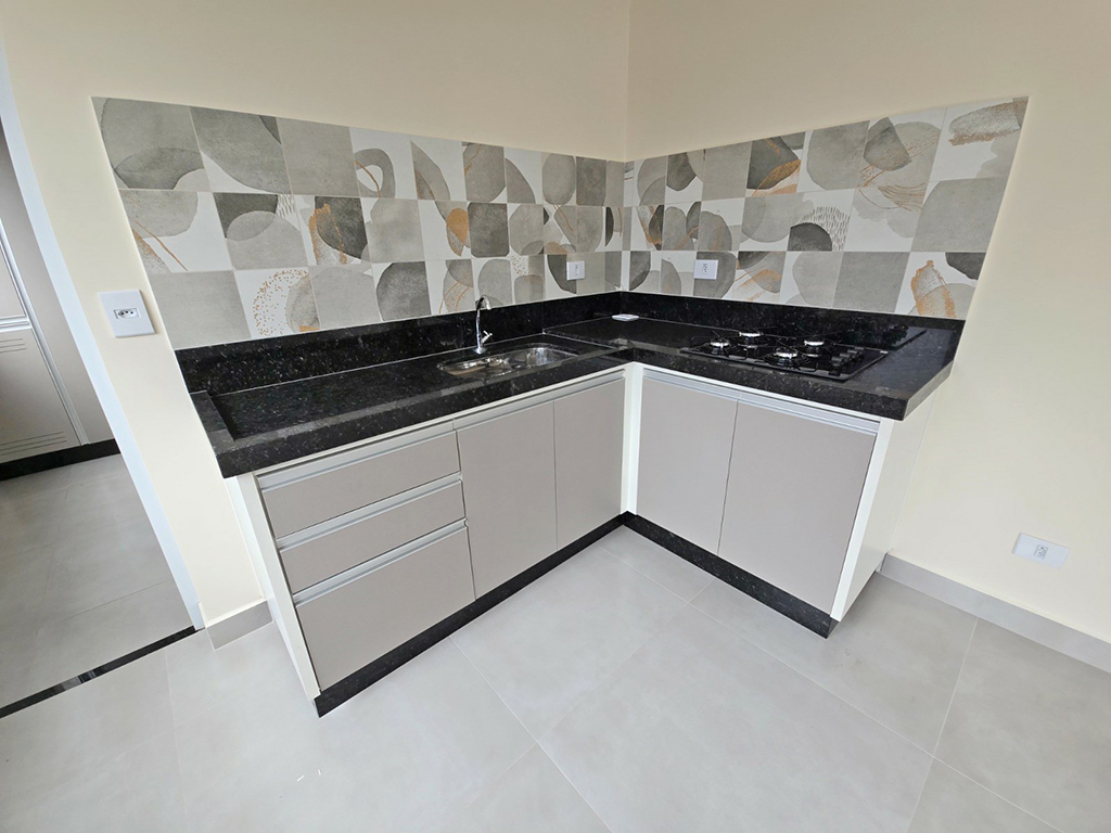 | Apartamento moderno e funcional com 02 dormitórios, sendo uma suíte, sala e cozinha conjugadas, banheiro social, lavanderia, varanda, 01 vaga de garagem, portão eletrônico, monitoramento por câmeras. |